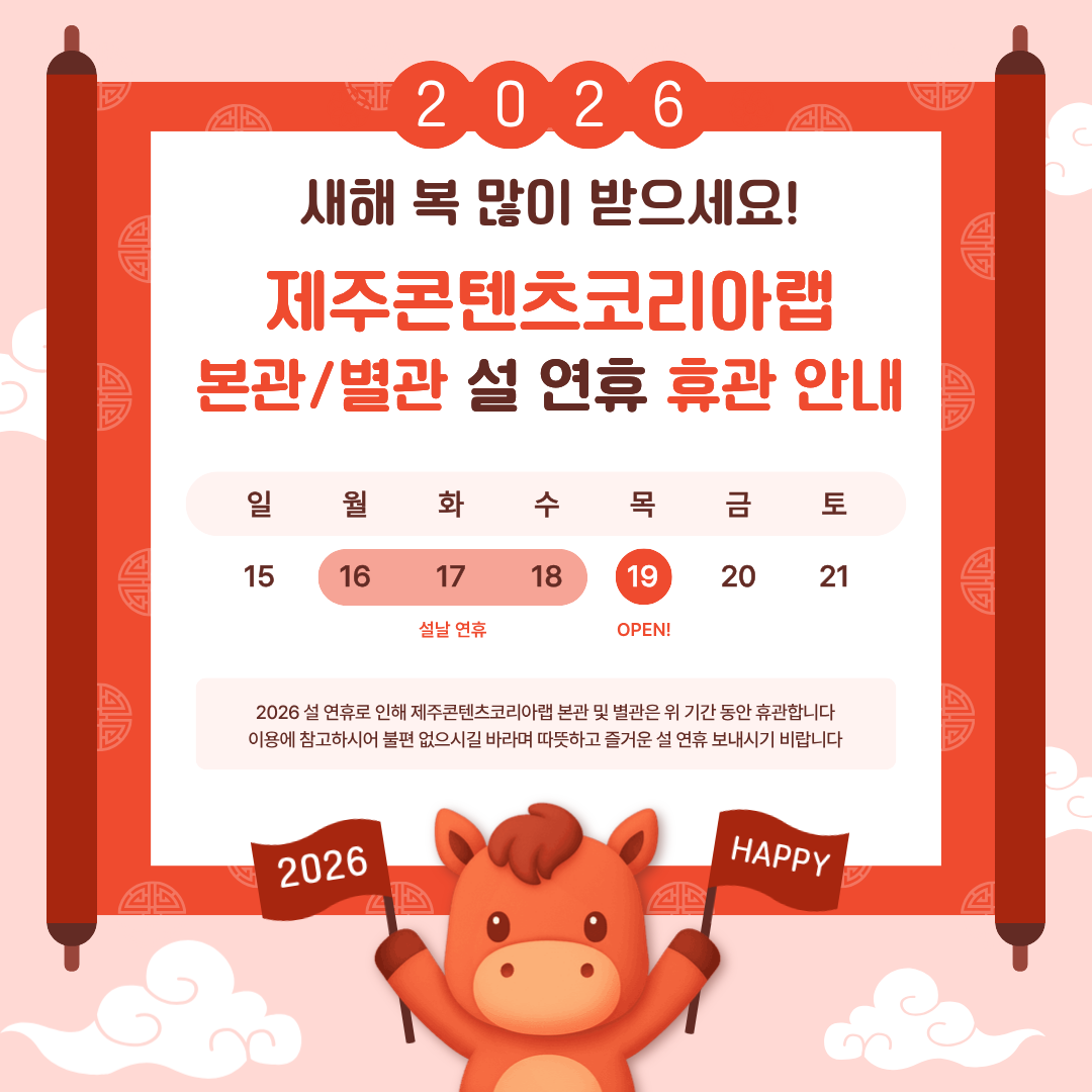 - 공지제주콘텐츠코리아랩 2026 설 연휴 휴관 안내2026-01-28
