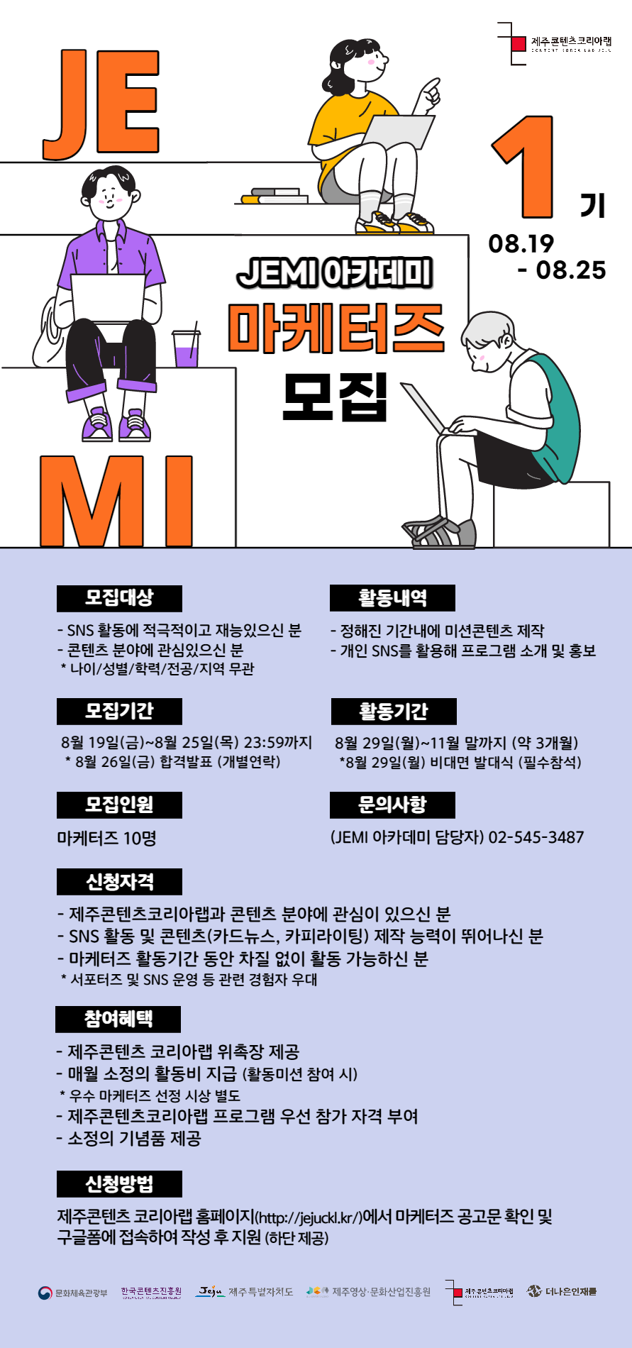 JEMI마케터즈 지원서 작성하러 가기 >> https://docs.google.com/forms/d/e/1FAIpQLSei1dCtKnljYFm9zu_MiXtERQw-E4KidhztqpMSf0y7Z0isDA/viewform